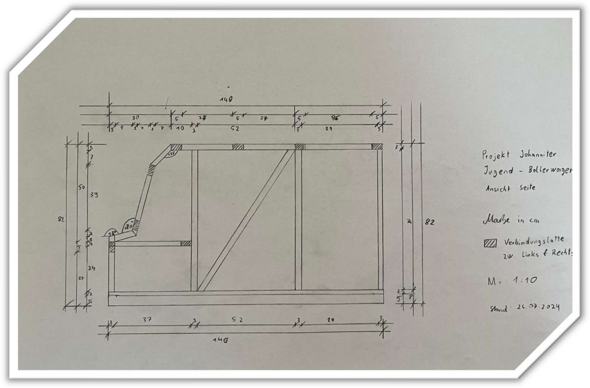 Im Sommer trat die Johanniter-Jugend Kärnten in Deutschland beim Bundeswettbewerb in Baden Württemberg an. Dort entdeckten die Kärntner:innen selbstgebaute Bollerwagen einzelner Jugendgruppen. Daraufhin stand der Entschluss fest, einen eigenen Kärntner Jugendgruppen-Einsatzwagen zu bauen. Die Planung war rasch abgeschlossen, dann begann die Suche nach Sponsoren.