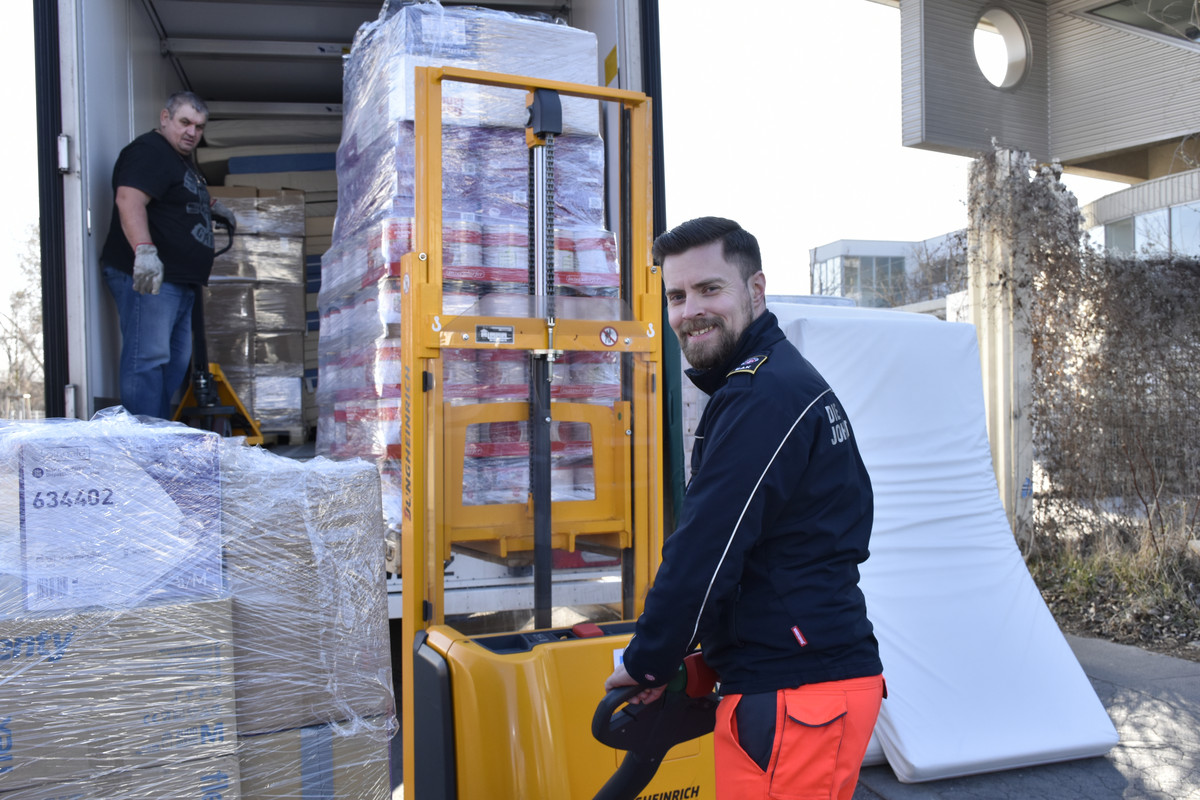 In einer gemeinsamen Aktion der Schweizer Johanniter mit den Johanniter Ungarn und Österreich wurde ein Hilfstransport für die Ukraine organisiert. Dieser startete in der Schweiz und machte einen Zwischenstopp in Wien, um weiteres Material aufzunehmen.