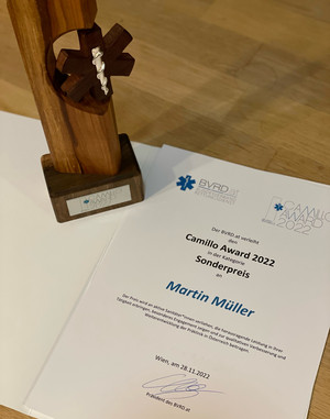 Mit dem Camillo Award setzt der österreichische Bundesverband Rettungsdienst gemeinsam mit ausgewählten Kooperationspartnern ein öffentlich sichtbares Zeichen für die Leistungen und besonderen Verdienste um die präklinische Notfallversorgung in Österreich. Zum dritten Mal wurde am 28. November der Camillo Award bei einem Festakt im Parlament verliehen. Heuer ist auch ein Johanniter unter den Preisträgern. In der Kategorie Sonderpreis wurde Martin Müller für seine Leistungen im Organtransportdienst der Johanniter Wien ausgezeichnet.