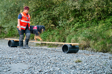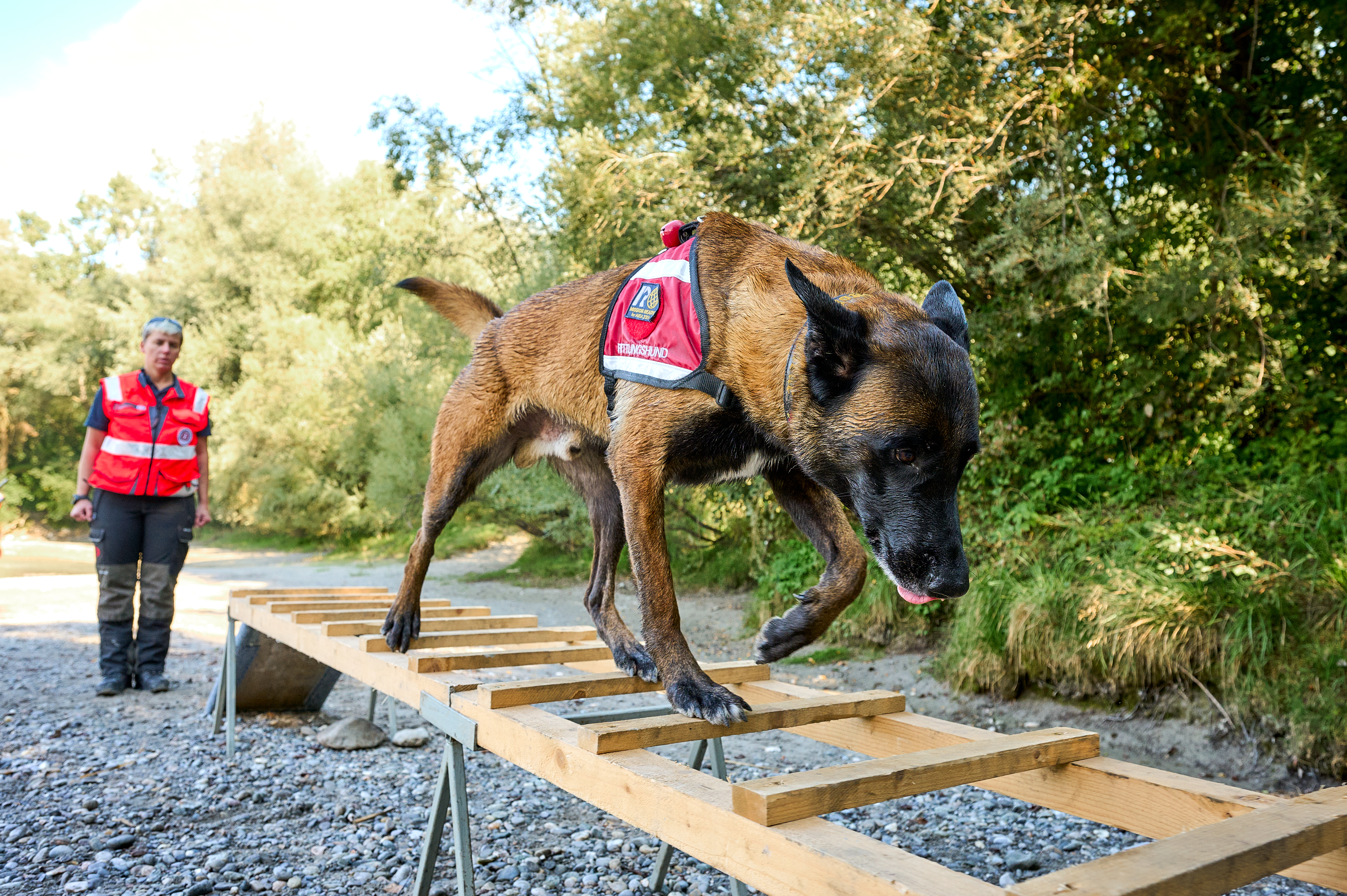 Im Training üben Rettungshunde über Leitern zu gehen, damit sie sich im Notfalleinsatz auch auf Trümmern - etwa nach einem Erdbeben - sicher fortbewegen können.