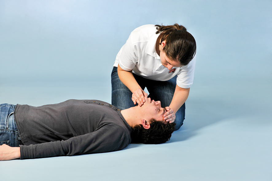 - Halten Sie den Kopf der bewusstlosen Person überstreckt.