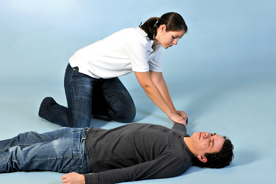 Ist ein Mensch bewusstlos (nicht erweckbar, Atmung vorhanden), dann legen Sie die Person in die stabile Seitenlage.